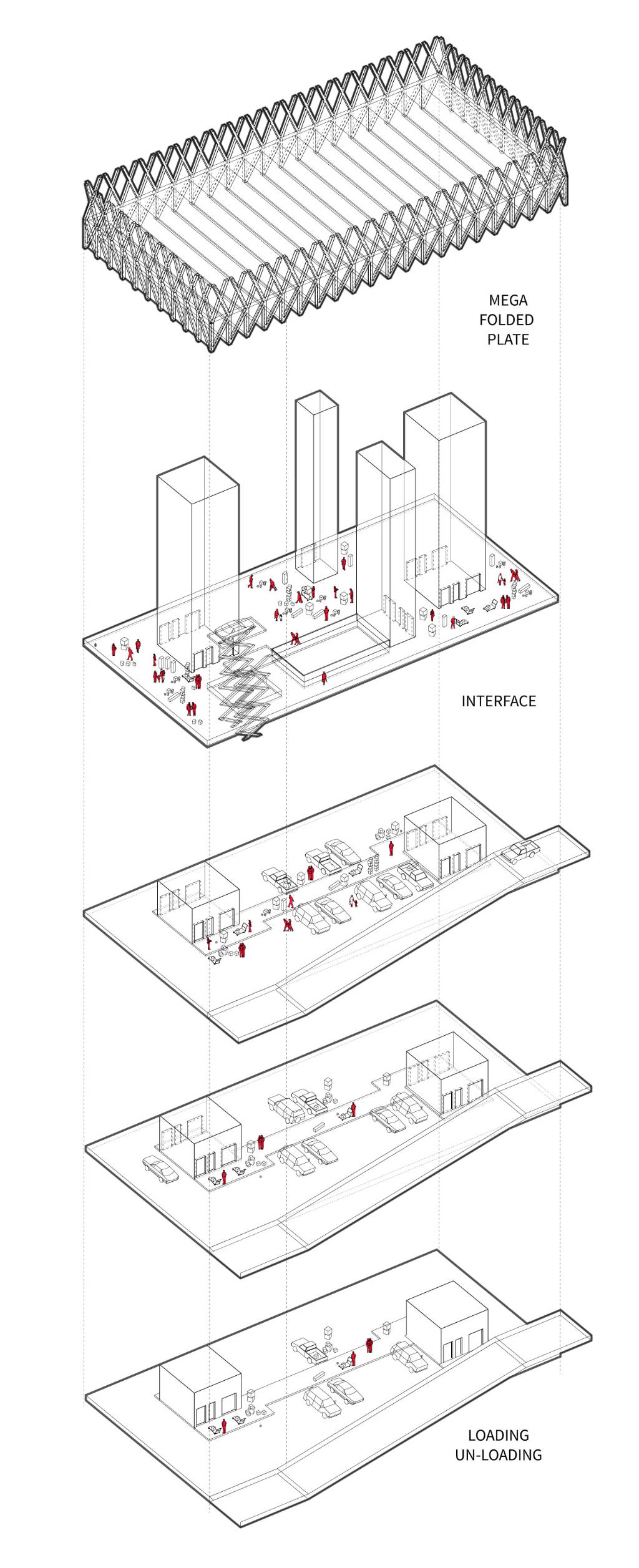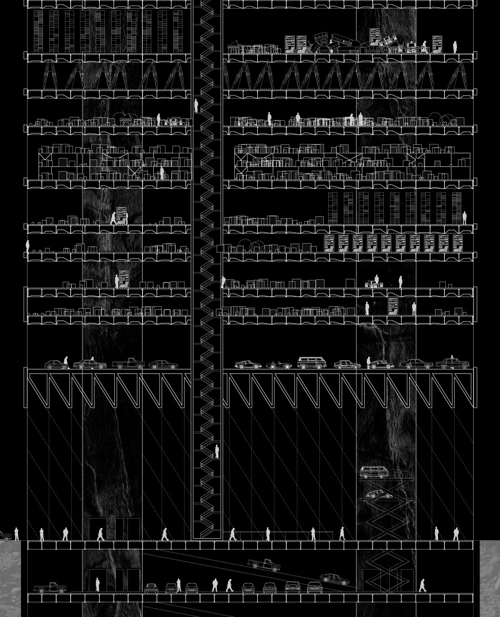 The hub, in a sense, became a vertical version of storage centers in suburbs, but instead of existing on the periphery, we bring them to the forefront--creating a public spectacle, a meeting place, a monument to stuff.