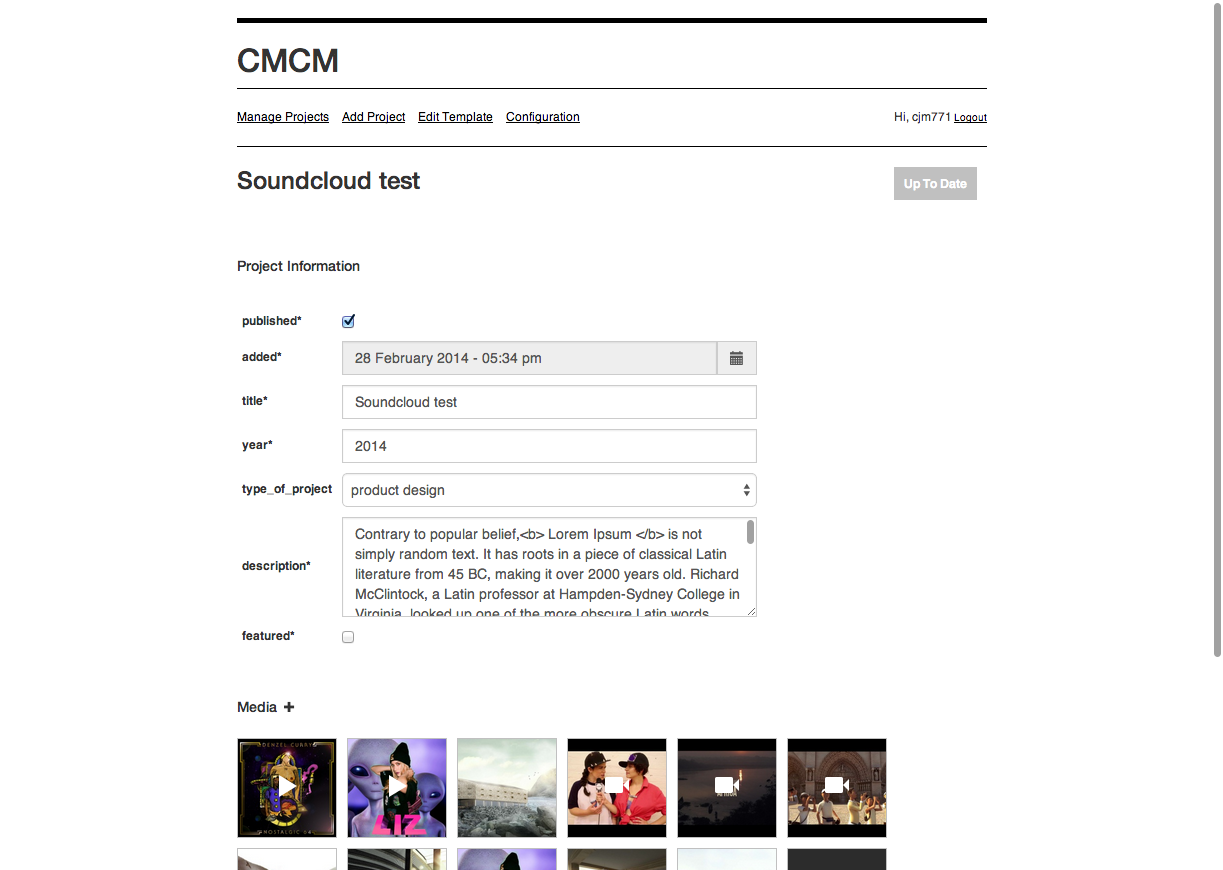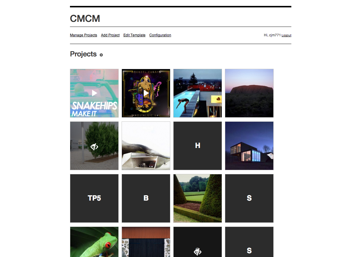 Built off the same principles of Blogweenie, CMCM is a simple sexy content manager for designers, built with PHP and Javascript, and a database-less storage tactic--A JSON-based content manager. It allows you to drag and drop the files to and from any directory on your server without having to migrate any other dependencies (such as SQL/ database structures). The goal was to make a manager that is transparent, flexible, and transportable. As long as your server has PHP, it should work on any server. It is extremely robust and handsdown the most ambitious project I've done thus far. CMCM is also equipped with frunt, a designed-for-cmcm api for grabbing project data, sorting, displaying widgets (menu, slideshows, etc), and more. Not only is CMCM flexible and simple, but can be extended to have as many attributes as you want, as well as multi-user, multi-backend support!