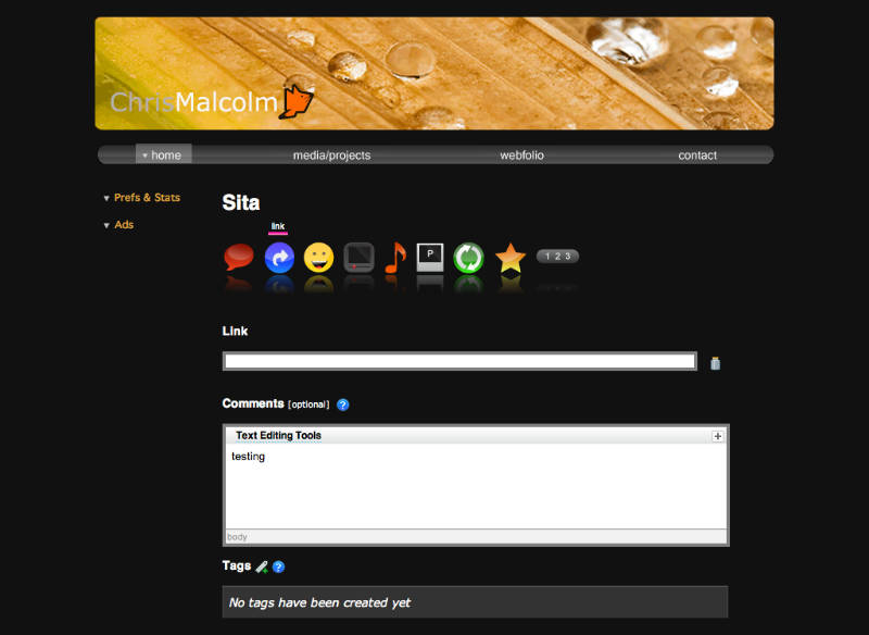 This was my website before I realized that creating a fully-from-scratch-customized blog engine would take longer than 2 summers. The site's simplest of features included random image headers and font colors based off said headers. The Backend was very robust but incomplete, featured a quote-on-quote 'lazyman's blog' known as SITA, capable of capturing thumbnails and data from sites for url sharing, auto-embedding of youtube videos (and other video sites), secure login features, twitter/facebook syncing to a single status update, and much more. And with this, it also had all the pretty web 2.0 icons and graphics to accompany it as well. Unfortunately it proved to be too much of a time sink and thus a project on possibly permanent pause...the components will of course hopefully be reused and readapted for future projects.