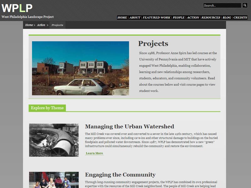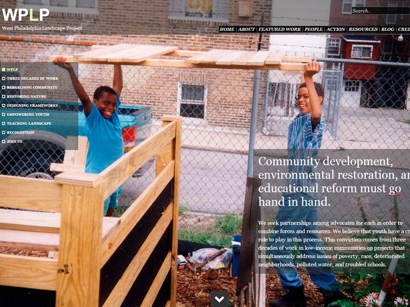 Redesign of the wplp.net website. For more than twenty-five years, the West Philadelphia Landscape Project (WPLP) has worked in the Mill Creek watershed and neighborhood. Their mission is to restore nature and rebuild community through strategic design, planning, and education projects.