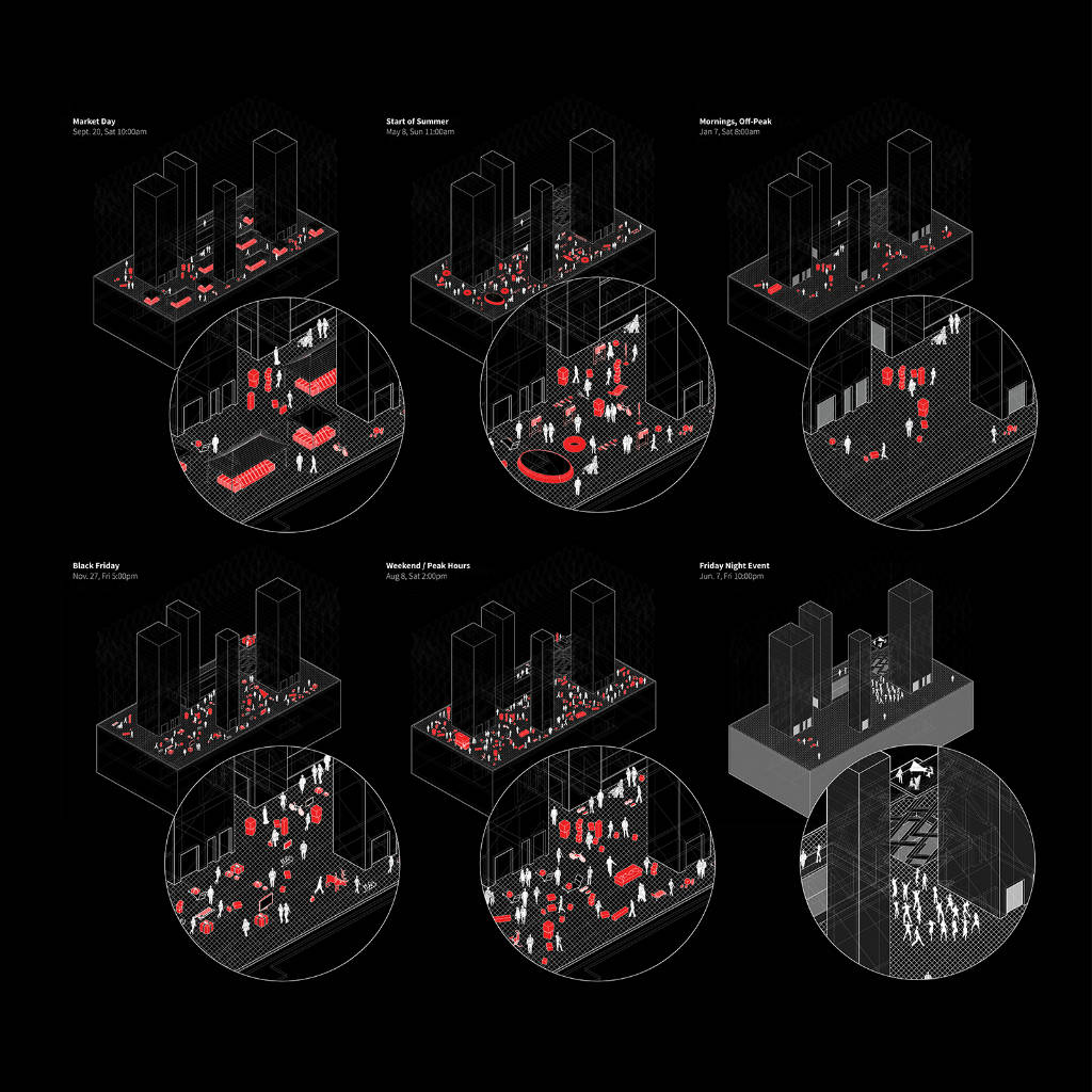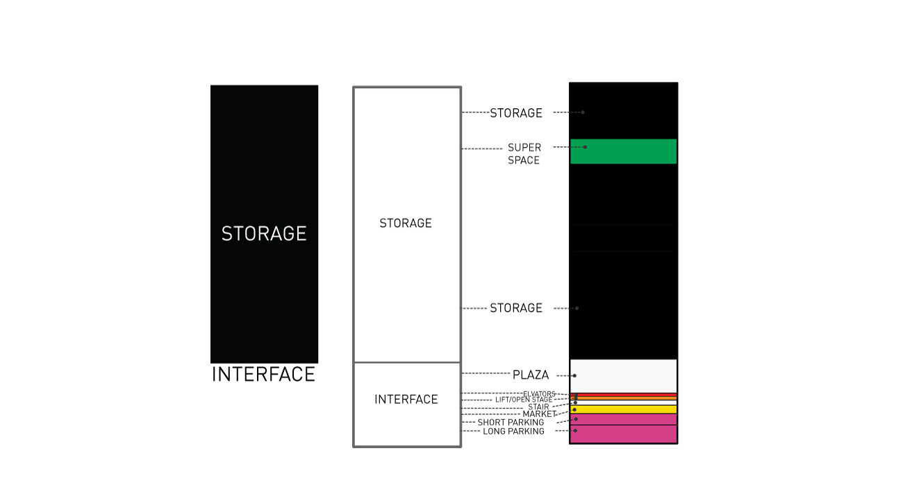 The hub, in a sense, became a vertical version of storage centers in suburbs, but instead of existing on the periphery, we bring them to the forefront--creating a public spectacle, a meeting place, a monument to stuff.
