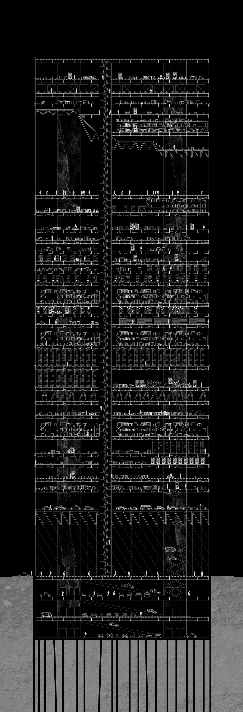 Ideally, each stuff hub would be designed by a different architect, embracing the variance and monumentality of such a tower. We chose to focus on SH13 as a case study of the typology and architecture.