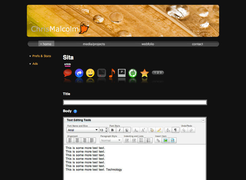 This was my website before I realized that creating a fully-from-scratch-customized blog engine would take longer than 2 summers. The site's simplest of features included random image headers and font colors based off said headers. The Backend was very robust but incomplete, featured a quote-on-quote 'lazyman's blog' known as SITA, capable of capturing thumbnails and data from sites for url sharing, auto-embedding of youtube videos (and other video sites), secure login features, twitter/facebook syncing to a single status update, and much more. And with this, it also had all the pretty web 2.0 icons and graphics to accompany it as well. Unfortunately it proved to be too much of a time sink and thus a project on possibly permanent pause...the components will of course hopefully be reused and readapted for future projects.